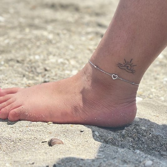 Brățară de picior Heartbeat Placată cu Aur Alb