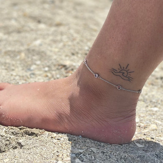 Brățară de picior Hearts Multicolor Placată cu Aur Alb