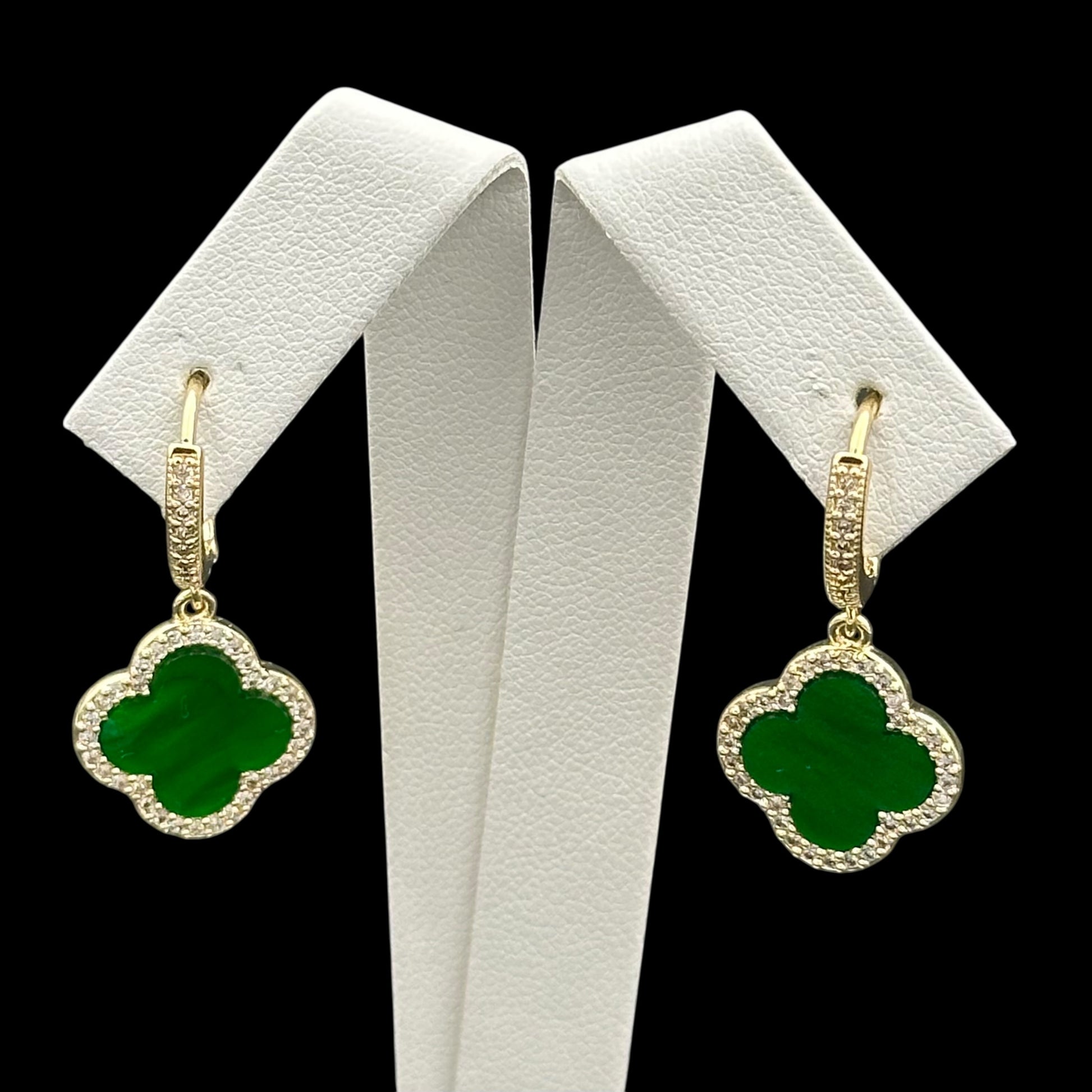 Cercei Trifoi Auriu cu Verde Placați cu Aur 18K