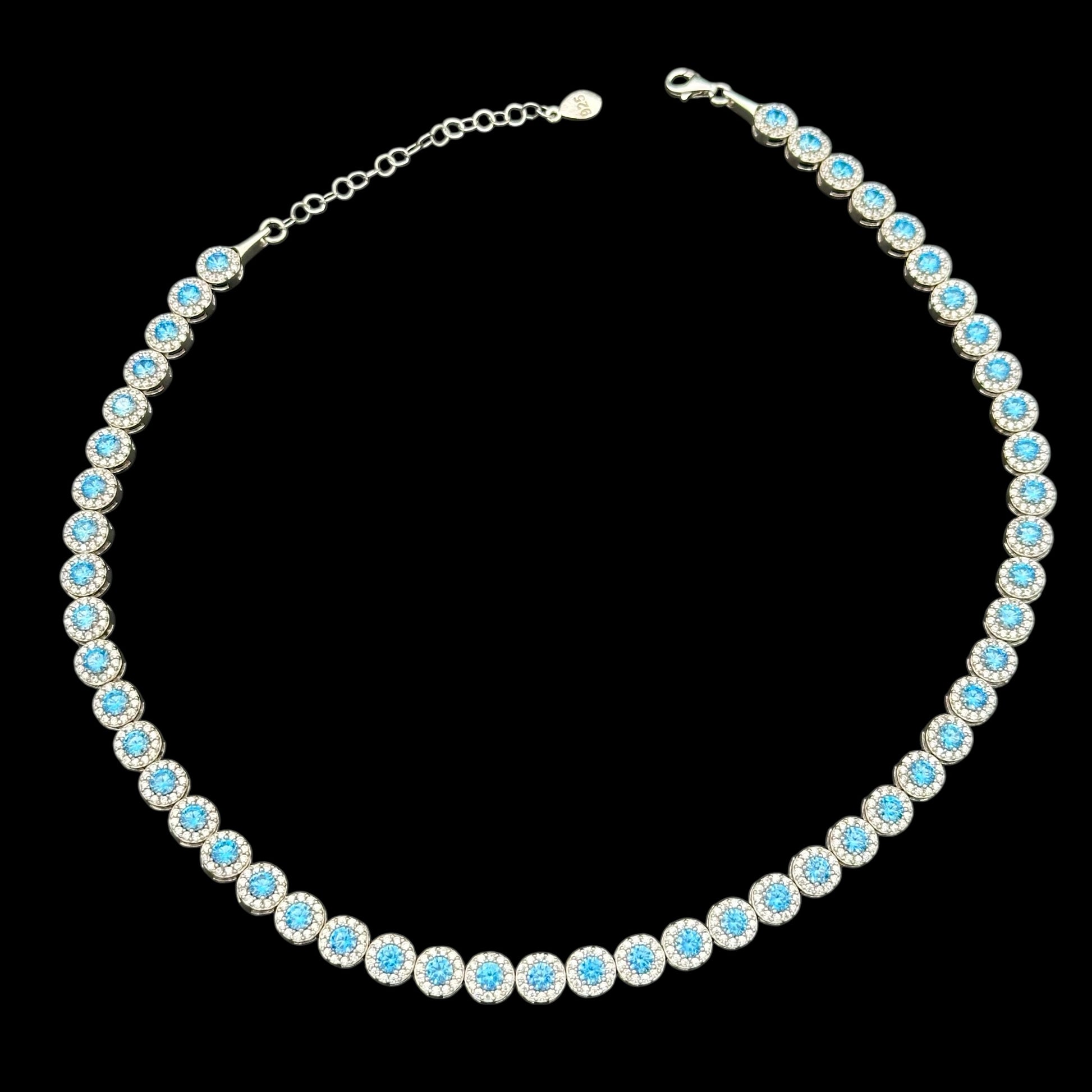 Colierul "Tennis Angely Light Blue" face parte din colectia Ladryn, fabricat din Argint 925, un metal nobil si pretios, lucrat manual de catre partenerii nostri, furnizori cu experienta in bijuterii fine.